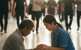 Sa gitna ng bakuran ng aming bahay sa barangay, nakatayo siya, hindi makagalaw, habang yakap-yakap siya ng isang lalaking ubanin na ang buhok, nanginginig ang mga kamay — na para bang kapag binitiwan niya ang yakap, mawawala ito magpakailanman.